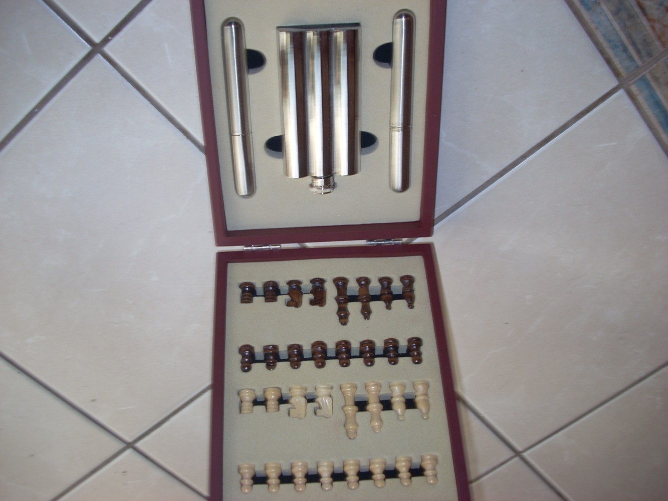 set σκάκι με 2 πουροθήκες και φλασκί 25€